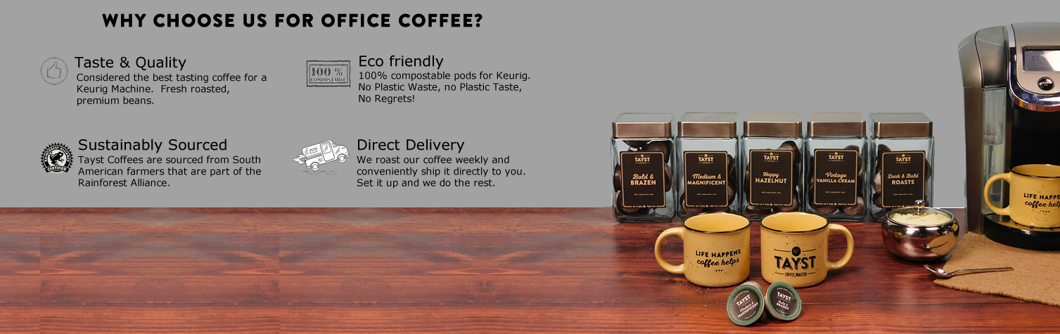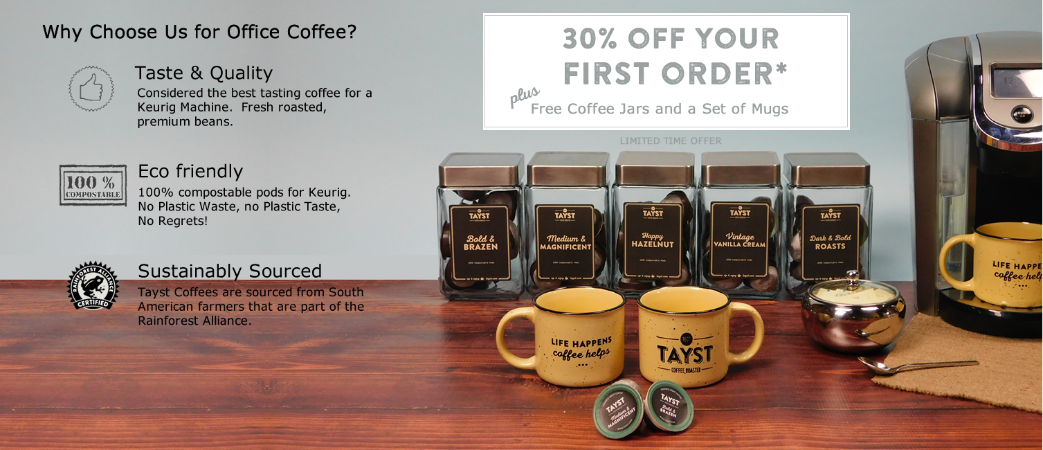 Tayst is an eco friendly coffee company. We're focused on transitioning offices & universities from traditional plastic Keurig kcups into compostable pods* for Keurig.
