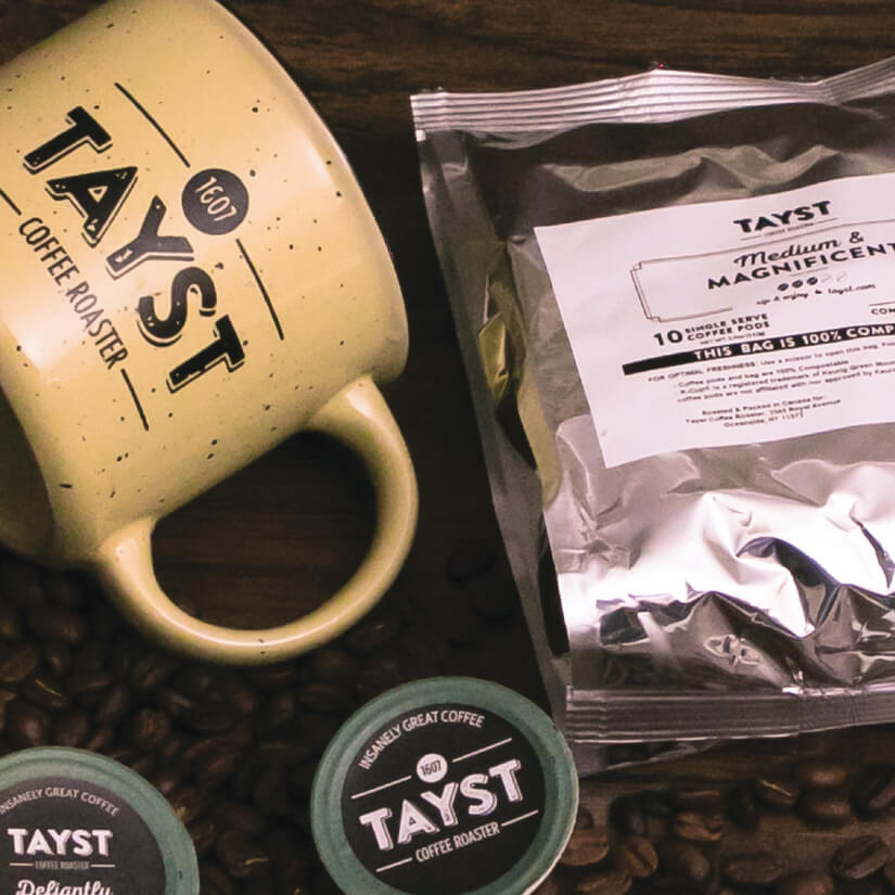 We use the top 3% of the specialty beans on the planet. Our beans are roasted fresh then cooled slow and portioned into a compostable pod* for your Keurig or nespresso machines. Want to drip brew, we have the same beans for that too. Tayst has been rated the best tasting pod for a Keurig for the past 4 years. We offer 10 premium coffee blends that'll knock your socks off.